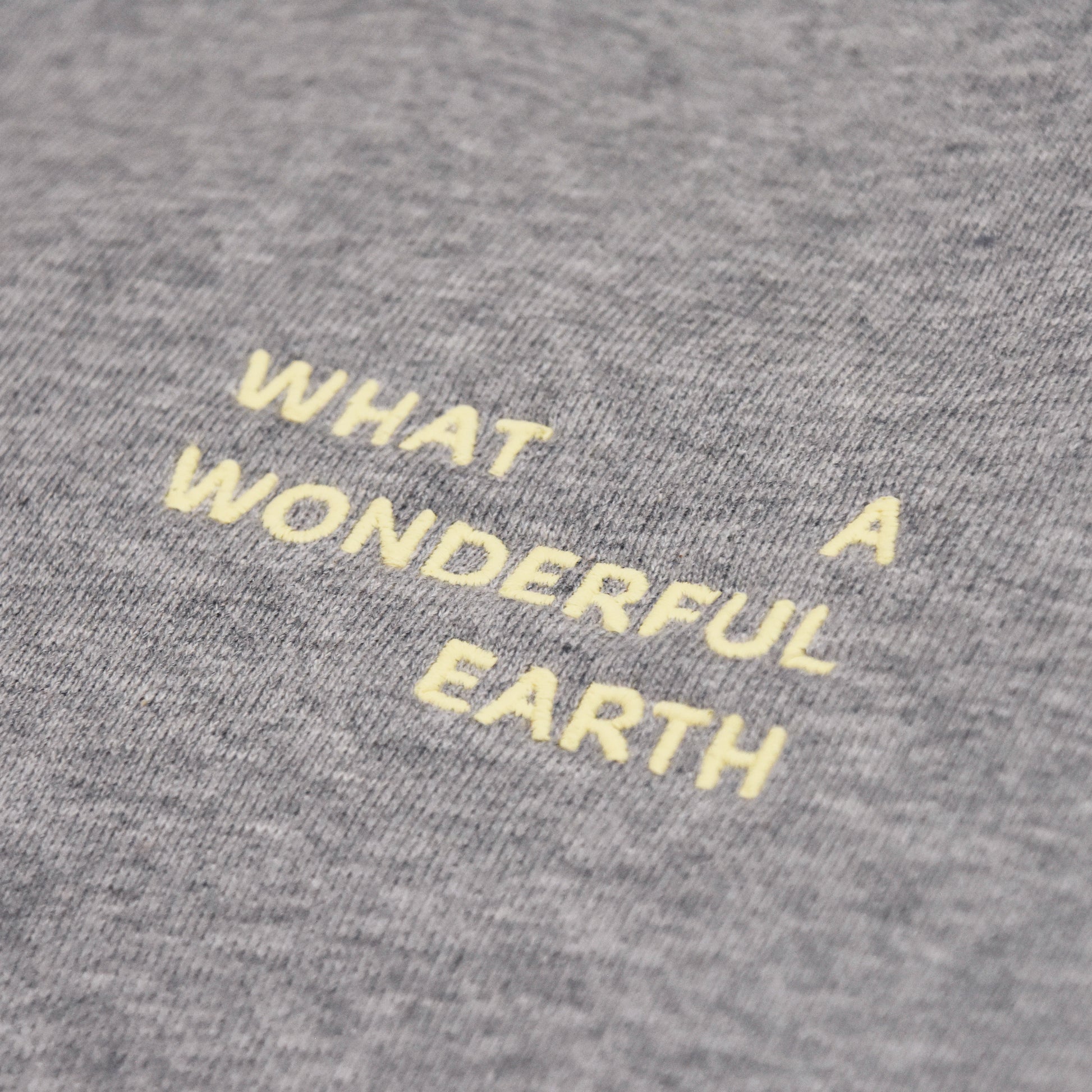 その3.にあたるPRODUCTSは、『標高1000m、山物語』をテーマに、"必要なものを、少しずつ"提案していきます。プロダクトナンバー[we-002]は、United Athle社の12.7 oz.のボディを使用したクルーネックのスウェットに、やさしいイエロートーンのリサイクル糸でブランドロゴとタグラインを刺繍したアイコニックなデザイン。霜降りグレーのボディにトーンを合わせた色の組み合わせは、さり気ない主張がポイントで、取り入れやすい一着です。
